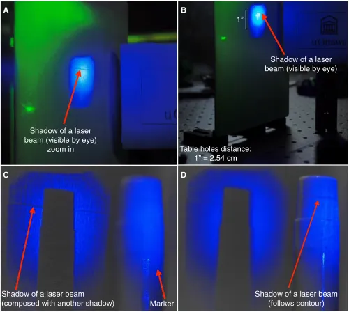 في نوفمبر 2024، نُشرت ورقةٌ علميةٌ بعنوان “ظل شعاع الليزر”¹، تُفصّل طريقةً تمكّن بها العلماء من إلقاء ظلٍ لشعاع ليزر داخل بلورة ياقوت، تم إضائتها بواسطة ليزر آخر. ورغم أن النتيجة ليست مطابقة تمامًا، إلا أنها تتوافق مع حدسٍ راودني منذ سنواتٍ بأن الضوء المتماسك قادرٌ بالفعل على إلقاء ظلالٍ في الضوء
